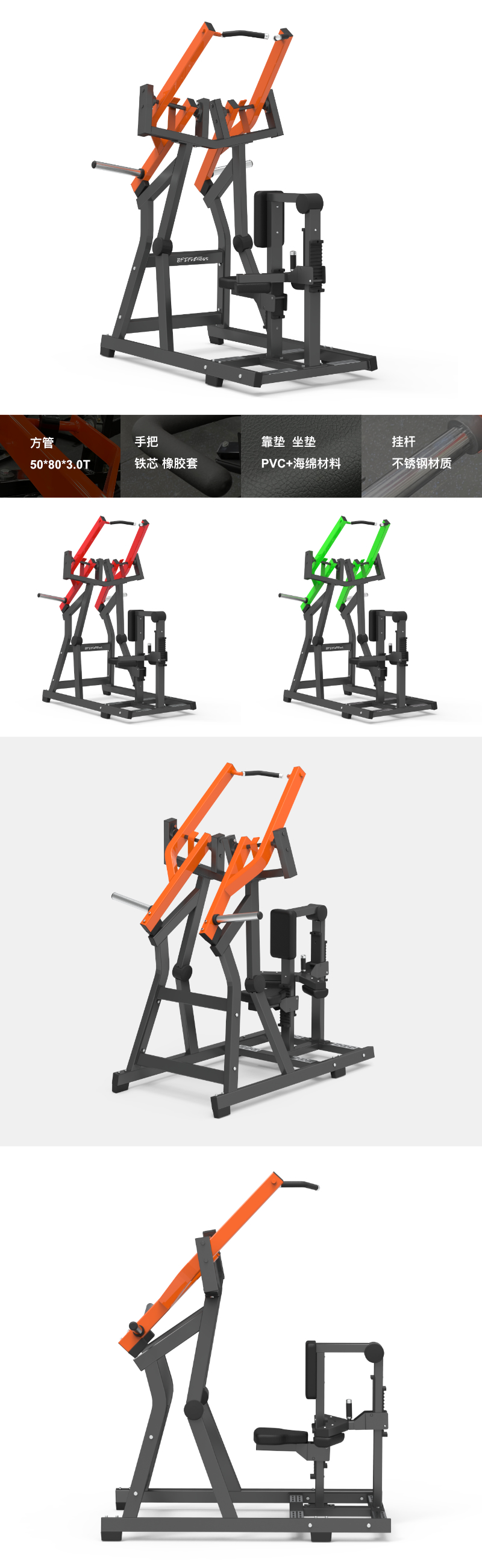 BFT-E28 BFT-E28 分动式前高拉背训练器 尺寸:1800x1300x2000mm 净重:143kgs 主管:方管50*80*3.0T 手把:φ25 铁芯+TPV橡胶套 靠垫/坐垫:PVC+海绵材料 挂杆:不锈钢材质 最大承重:300kg 获取报价