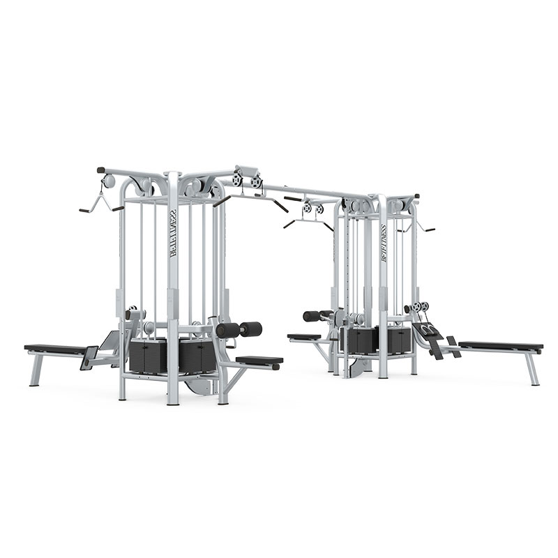 体能训练综合健身器械,由不同功能的部件组合而成,将减脂、心肺、力量训练等功能融为一体,不仅节省空间,还比购买多个单功能健身器材要便宜,大大降低了健身房的投入成本,同时也是国内军警部队消防等单位招标采购的常见训练器械。