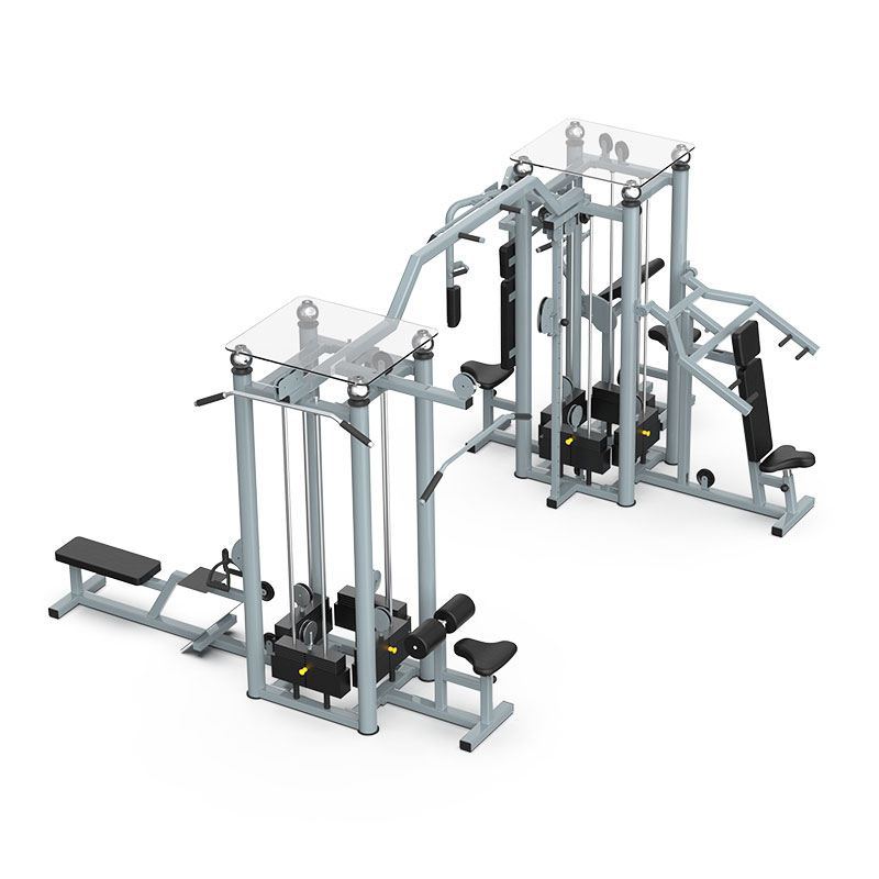 综合训练器是一种由多个功能和部位组成的固定器械,可以进行多种力量训练,如推胸、飞鸟、划船、下拉、腿弯举、腿伸展等。综合训练器可以锻炼全身各个部位的肌肉,如胸部、背部、腿部、手臂等。综合训练器训练相比自由器械训练更加方便和节省空间,也更容易调节好重量和角度。综合训练器训练需要注意调节好座位高度和距离,保持正确的姿势和呼吸,避免过度伸展或过度收缩。
