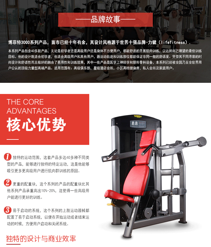 BFT3006推肩训练器,肩部推举机,坐姿推肩训练器 型号:BFT3006 价格:¥9960 产品占地尺寸: 1550*1360*1640mm 毛重/净重: ≥205/194kg 配重块标配/最大配重: ≥60/80kg 锻炼部位:三角肌-(前三角肌,中三角肌,后三角肌),斜方肌 获取报价