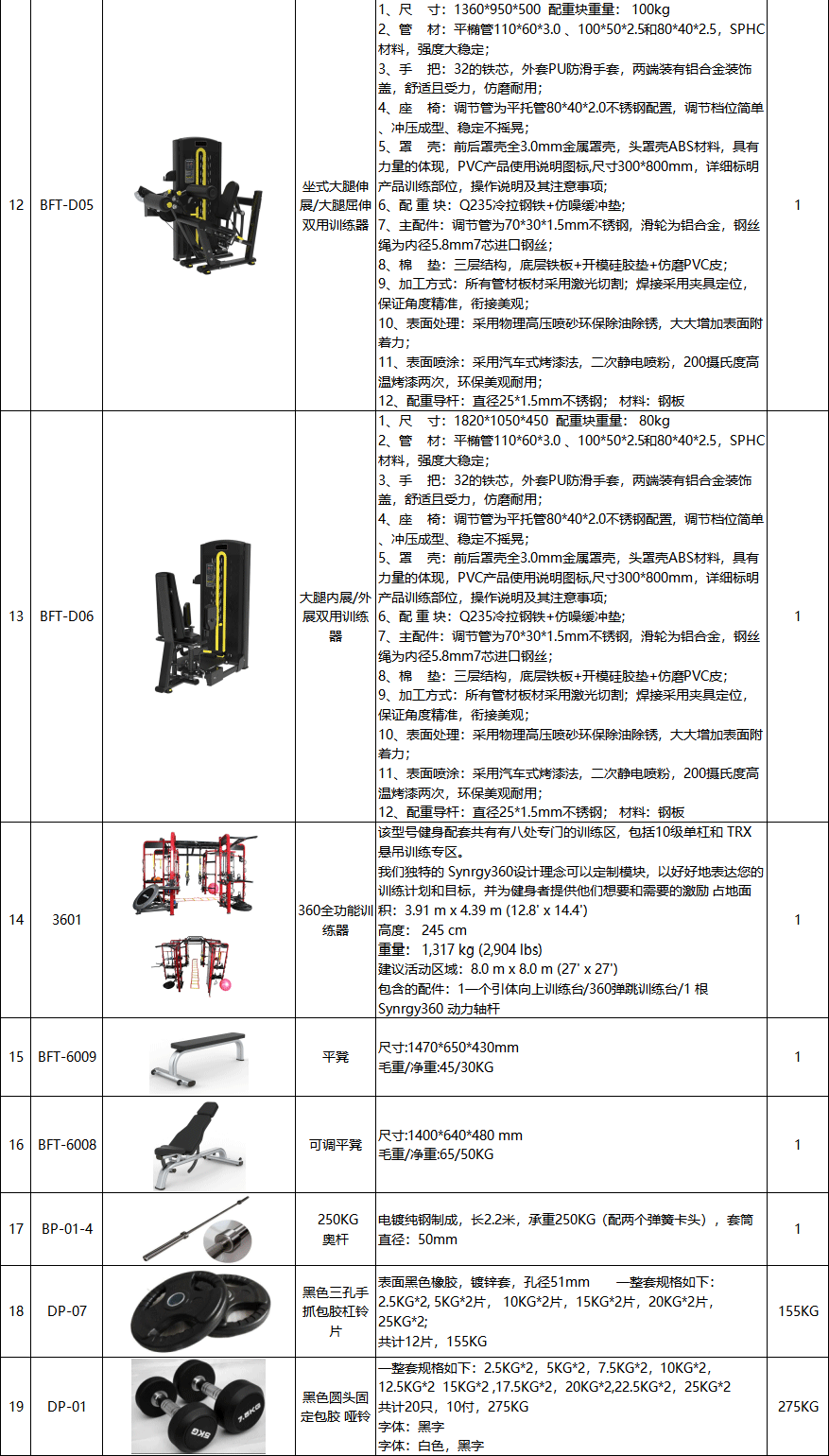 180㎡专业健身房超值套餐