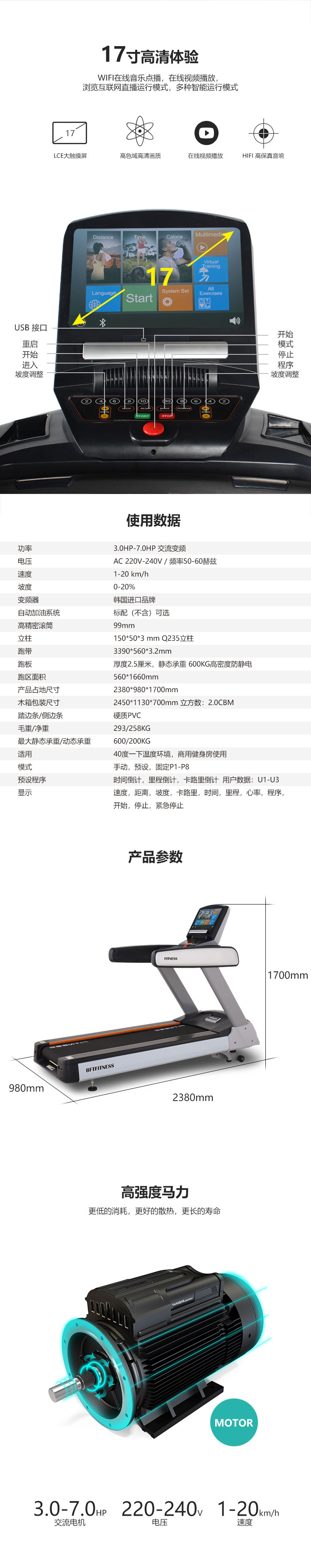 主马达功率:3HP (2.2千瓦)交流变频 ,马达峰值功率:7HP(5.1千瓦)
